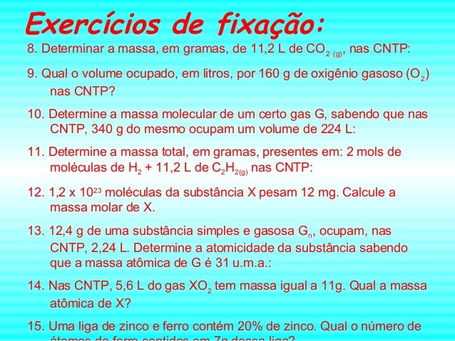 14)Calcule a massa em gramas de 8.10 24 moléculas de CO2:
